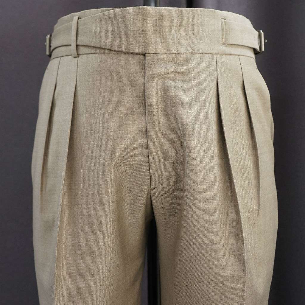 이게 구르카 바지다. 영국의 구르카 용병이 입던 바지를 복식화하여 만든. 이런 바지는 보통 자켓 없이 바지만 입고 다닐 때 바지에 포인트를 주기 좋다. 넓은 허리 밴드와 양 사이드 버클 밴드, 두 개의 인사이드 플리츠(안쪽 주름). 여튼 이 바지의 시초가 된 게 바로 구르카 용병인데 그 용병에 대한 다큐를 본 거다.