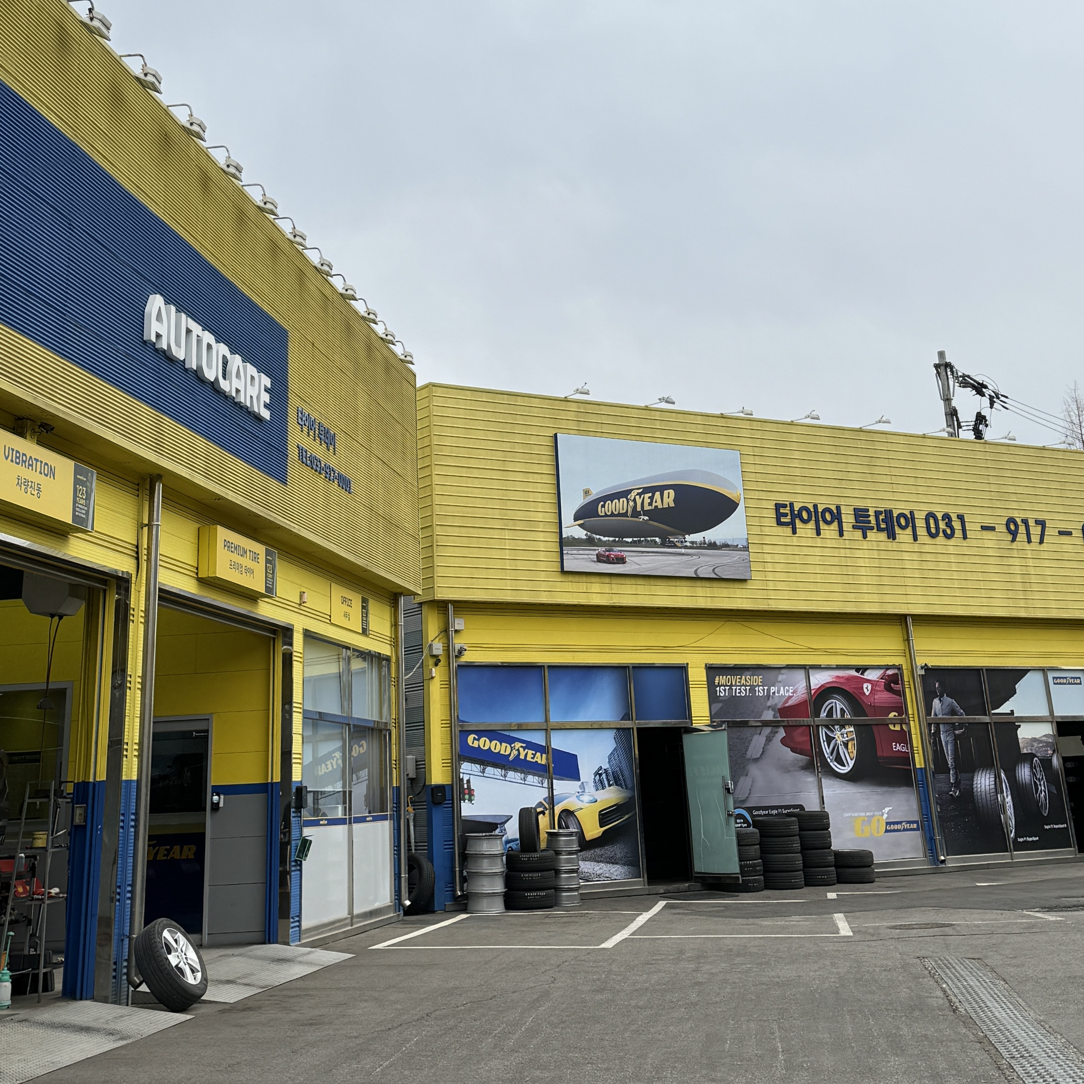 왼쪽 앞타이어만 공기압이 낮다고 해서 벤츠 타이어킷으로 공기압을 맞춰줬는데, 주행하다 보니 계속해서 공기압이 내려가는 거다. 펑크란 얘기. 그래서 내가 가는 공업사에 전화를 했더니 타이어 문제면 여기 가보라고 소개해준 데가 일산 덕이동 쪽에 있는 타이어 투데이다. 내가 다니는 공업사는 믿을 만하다. 다른 데서는 교체하라고 하는데, 여기서는 좀 더 타도 된다고 하고 정말 이익보다는 있는 그댈 얘기를 해주기 때문. 거기서 소개해주는 데니까 신뢰할 만하다는 생각이라 갔지.