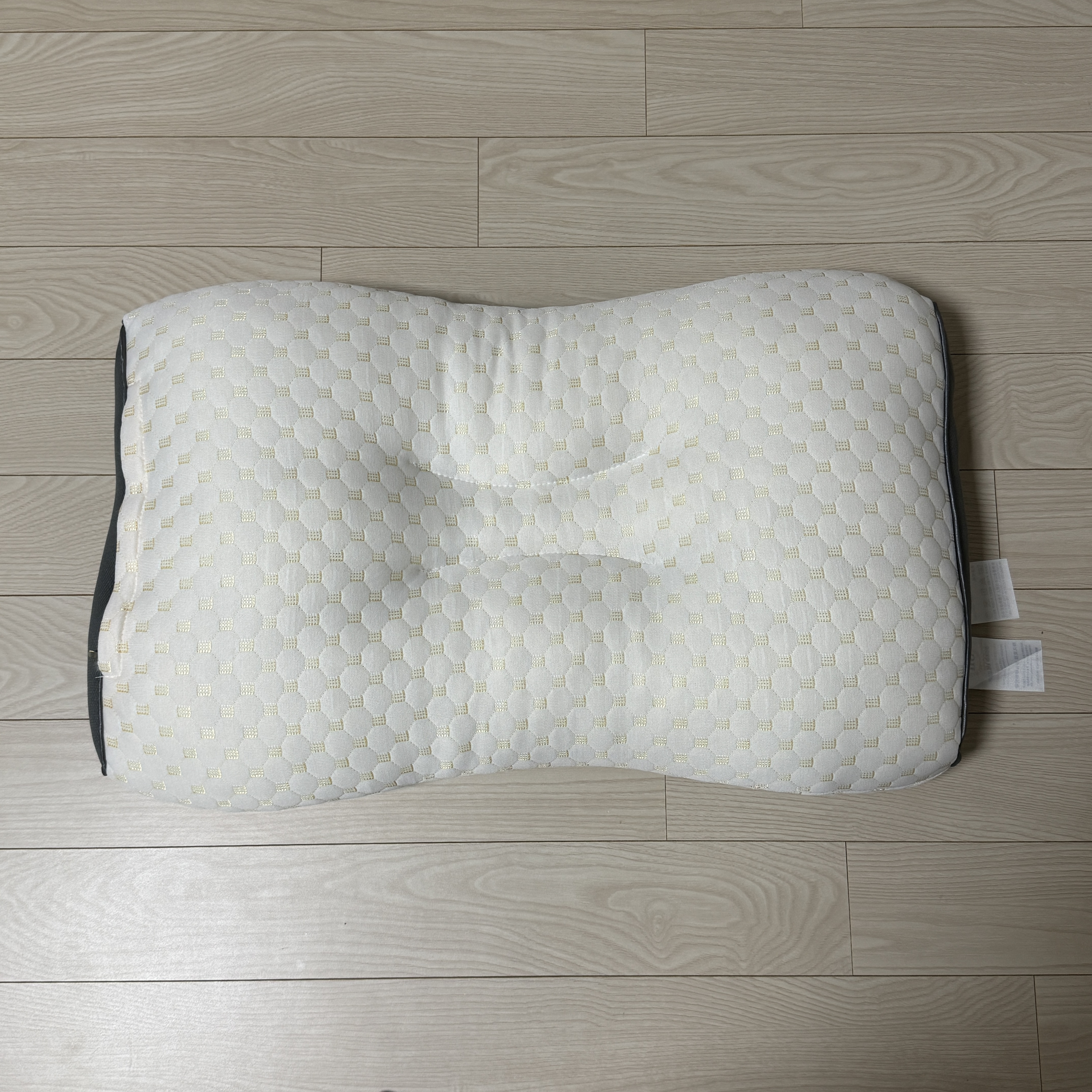 모양은 이렇게 생겼다. 지금 내가 쓰고 있는 실크 깃털 베개는 두툼해서 푹신하긴 하지만 낮은 베개를 선호하는 사람에게는 안 맞거든. 그래서 이거 사두면 혹시나 또 쓸 일이 있을 거라 생각해서 픽한 거다. 평소에는 테이블 겸 식탁으로 사용하는 2인용 의자에 등받이로 활용하고 있다. 그래도 사두면 쓸 데가 있긴 하더라. 다만 이제는 좀 자제 모드로.
