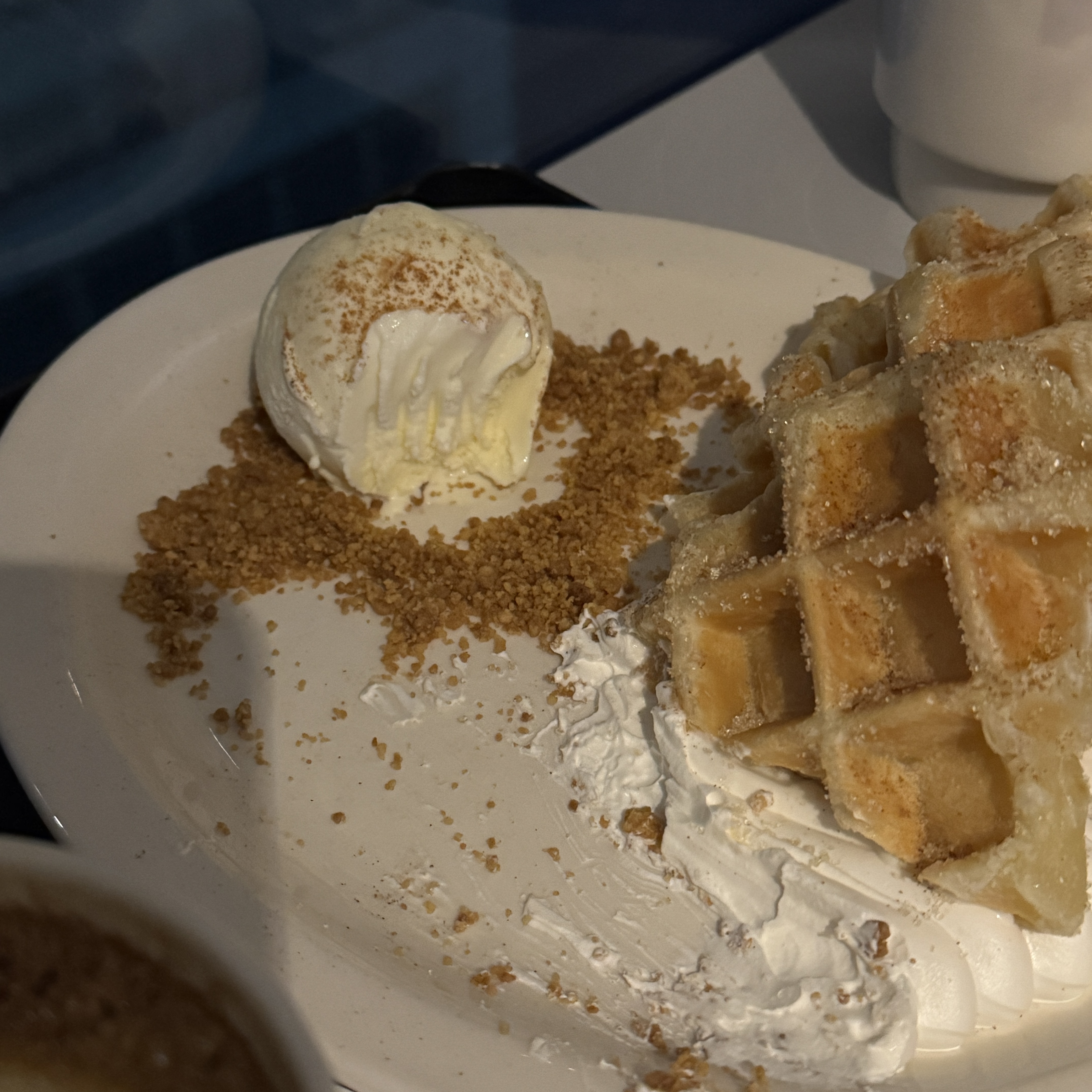 커피는 라떼, 크로플 시켜서 먹었다. 크로플 바삭.
