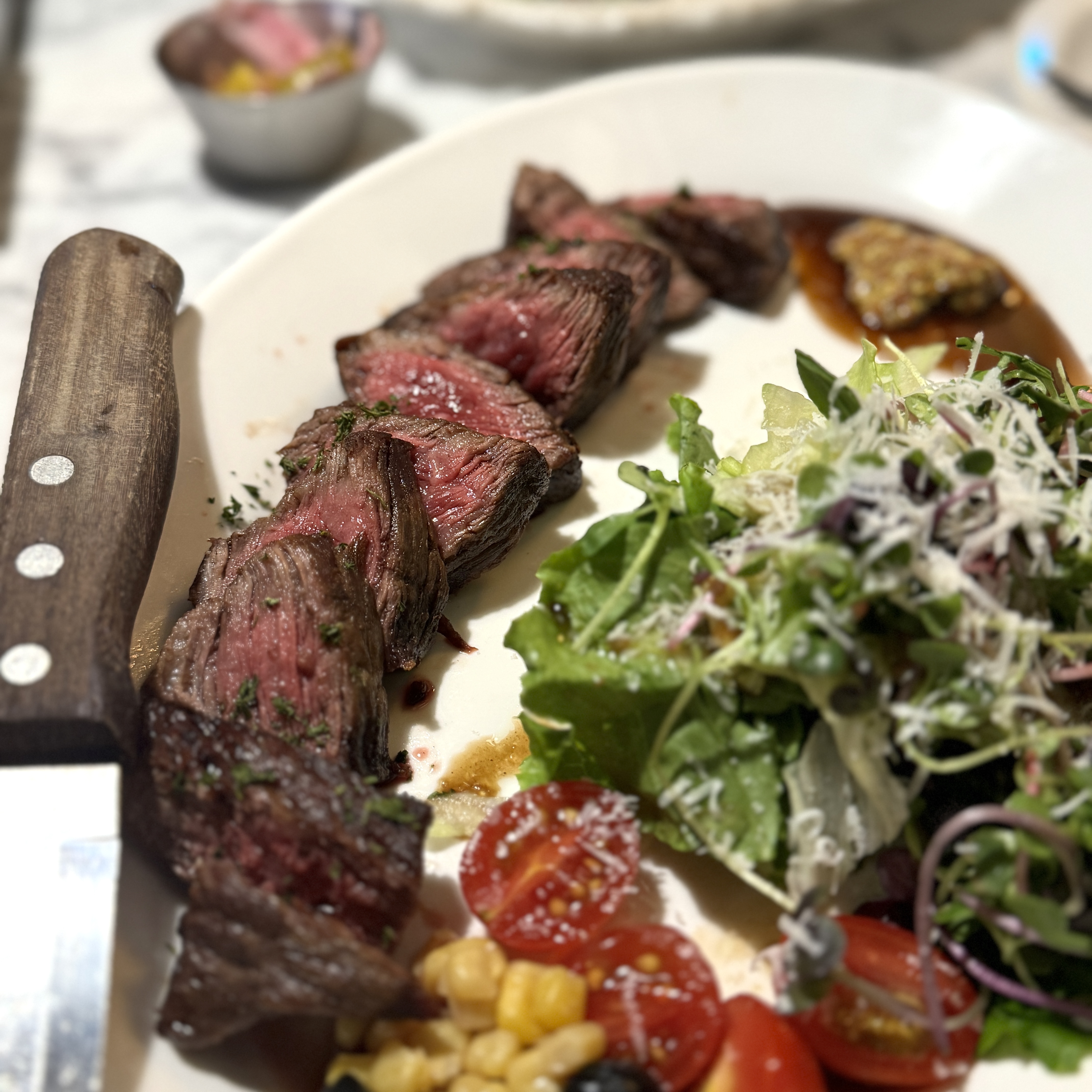 새우 타르타르 샐러드(17,900원), 머쉬룸 크림 파스타(16,900원), 살치살 스테이크(35,000원). 가격은 그리 비싼 편은 아니고, 맛도 그 정도 수준. 수원에서 한옥 레스토랑 이용하고 싶다? 그러면 가보길. 보니까 연인들이 대부분이고, 생일 이런 걸로 선물, 꽃과 함께 식사하러 온 커플도 있더라.