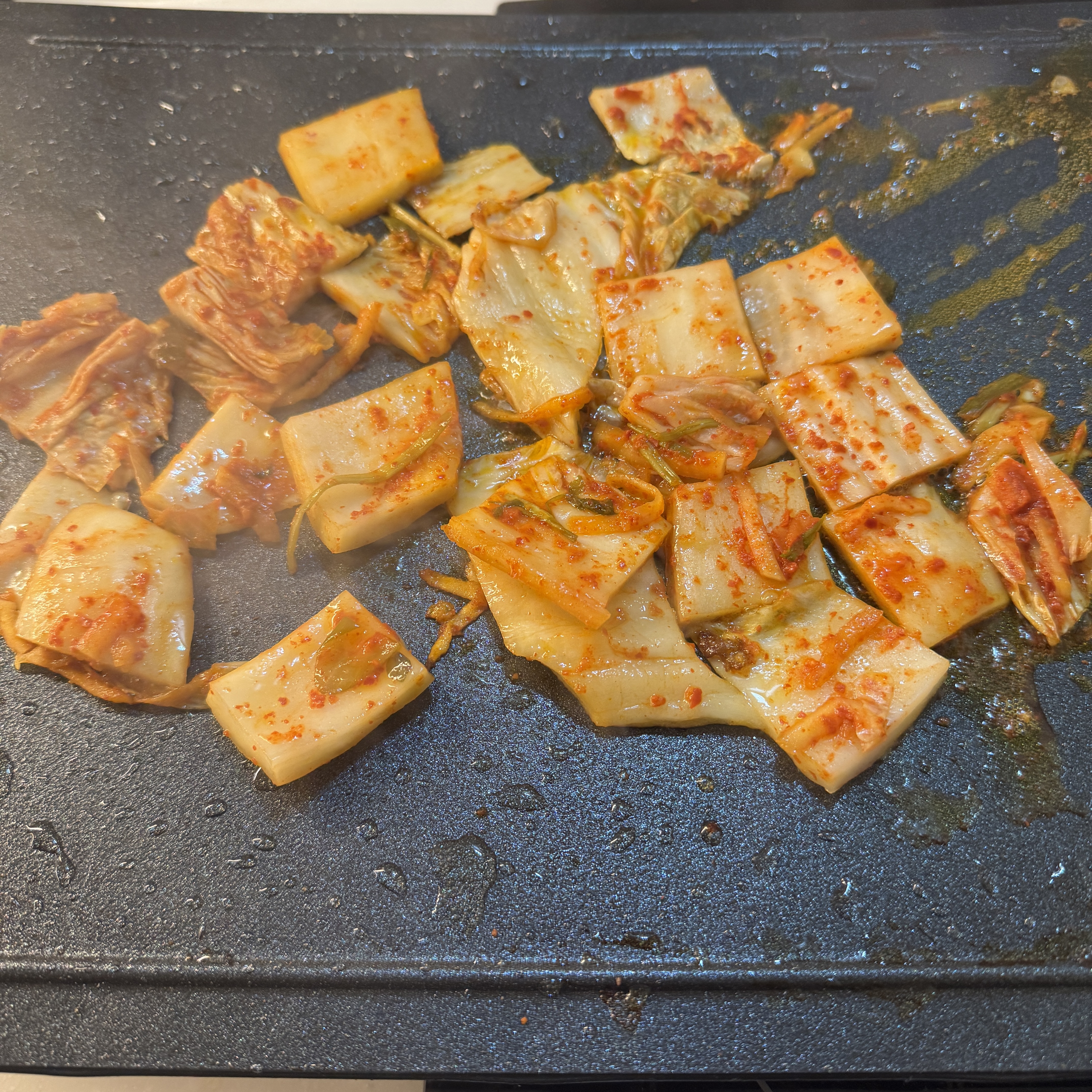 게다가 동생이 가져온 집 김치도 굽고. 김장해서 동생이랑 나랑 똑같은 김치 받아왔는데, 동생은 바깥에 둬서 벌써 익었고, 내 껀 아직 익지도 않았다. 그래서 동생 가져온 김치는 내가 먹기로 하고 내가 냉장고에 뒀던 김치는 동생 가져간. 김치 맞교환. ㅎ
