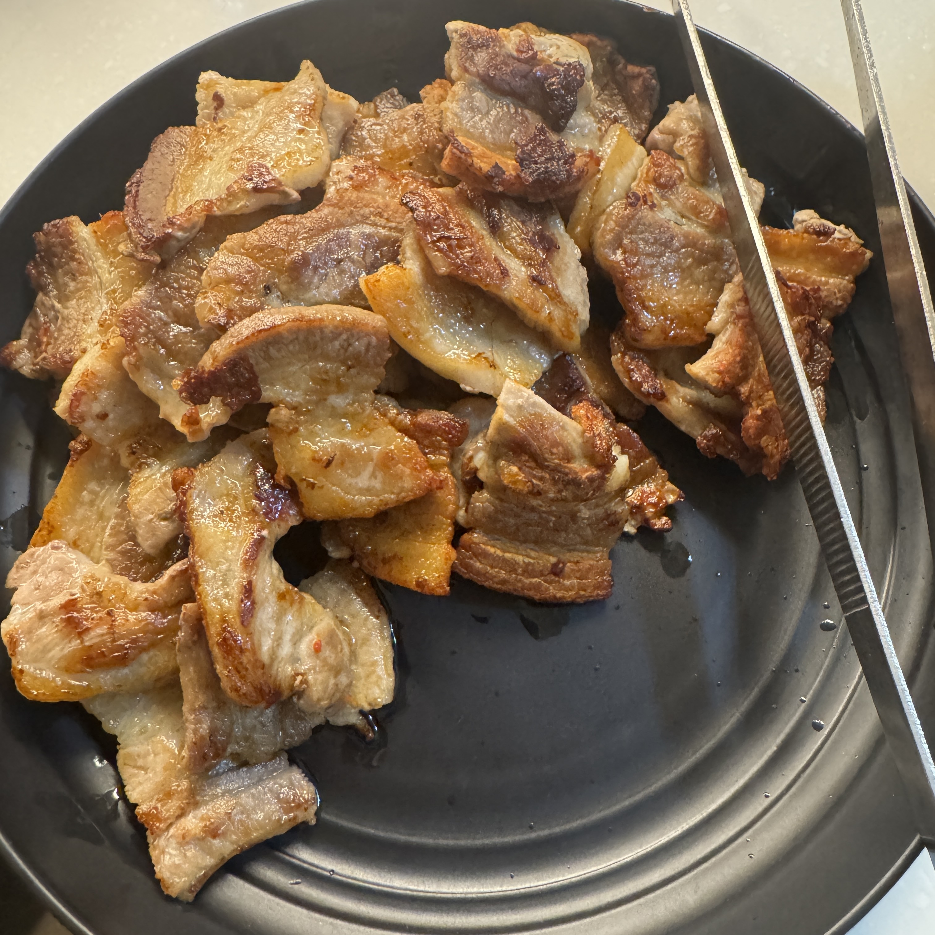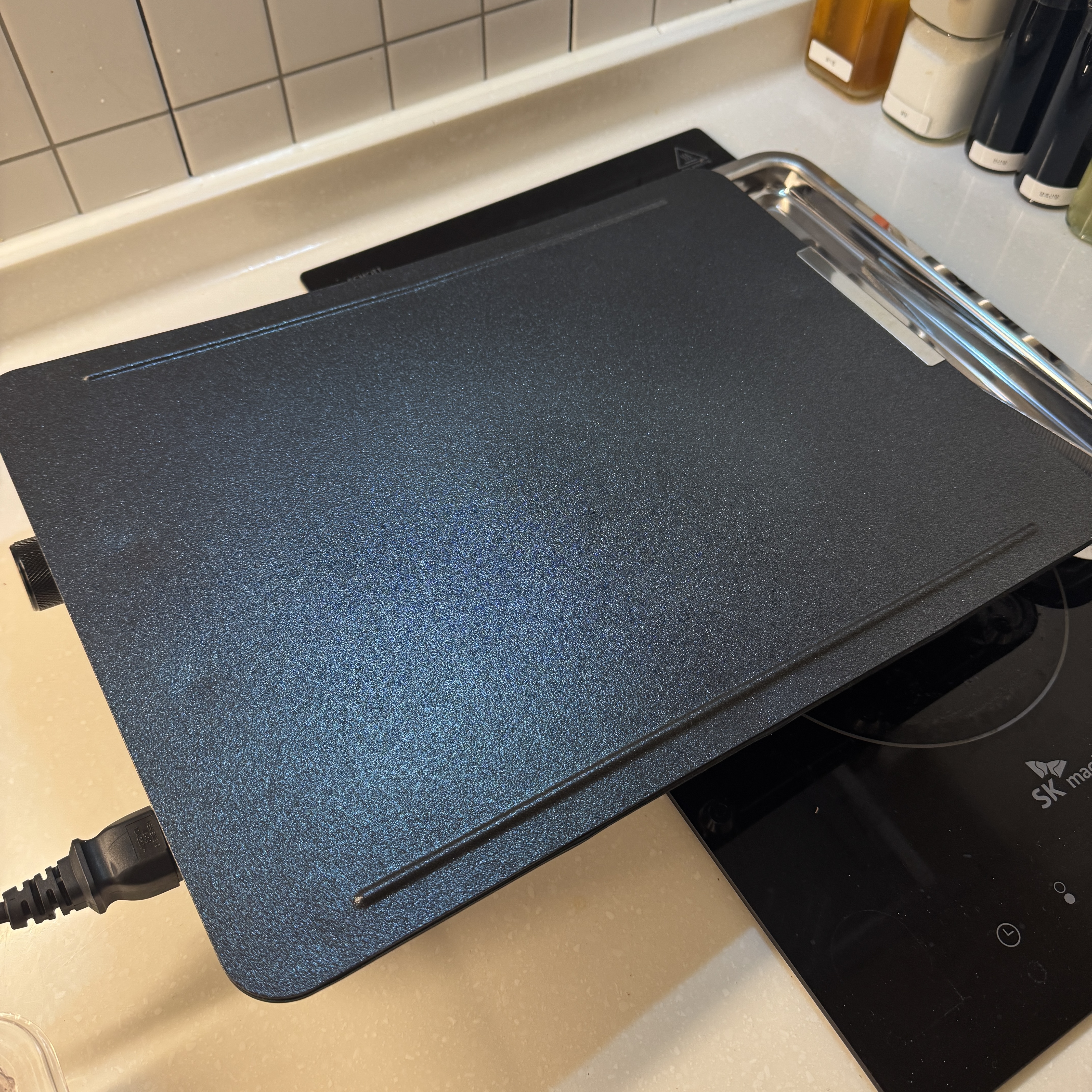 이번에 산 에버홈 전기그릴 인덕션 위에 올려두고 삼겹살 구웠다. 삼겹살 냄새 때문에 인덕션 위에 후드가 있어서. 그리고 잔여 냄새 나지 않게 Himpel 환기 청정기 켜두고 구웠네.