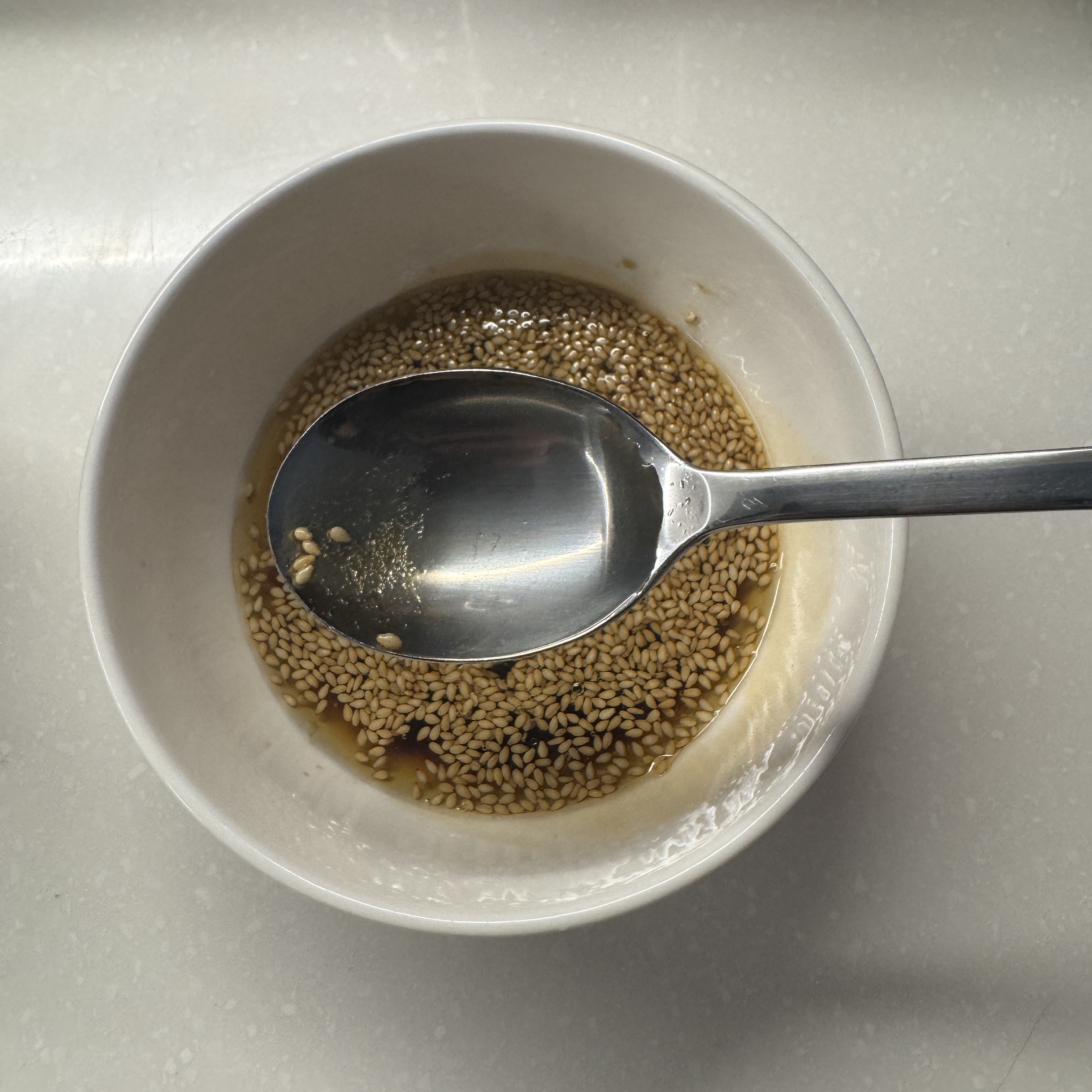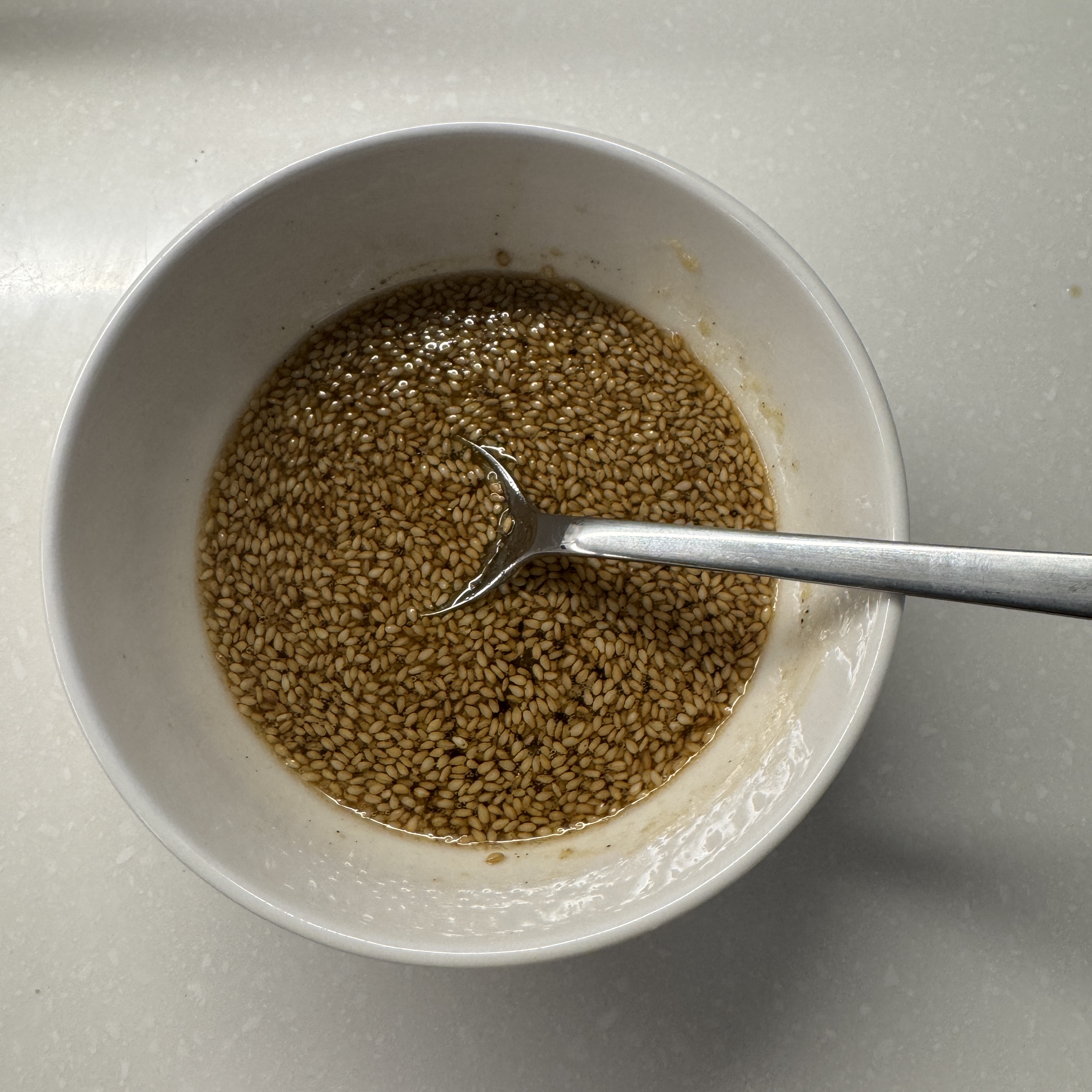 그리고 참기름 1스푼과 통깨 2스푼, 물 3스푼 넣는다. 냄새는 좋더라. 음식하면서 느끼는 거지만 양념 만들 때 식욕이 자극되는 듯.