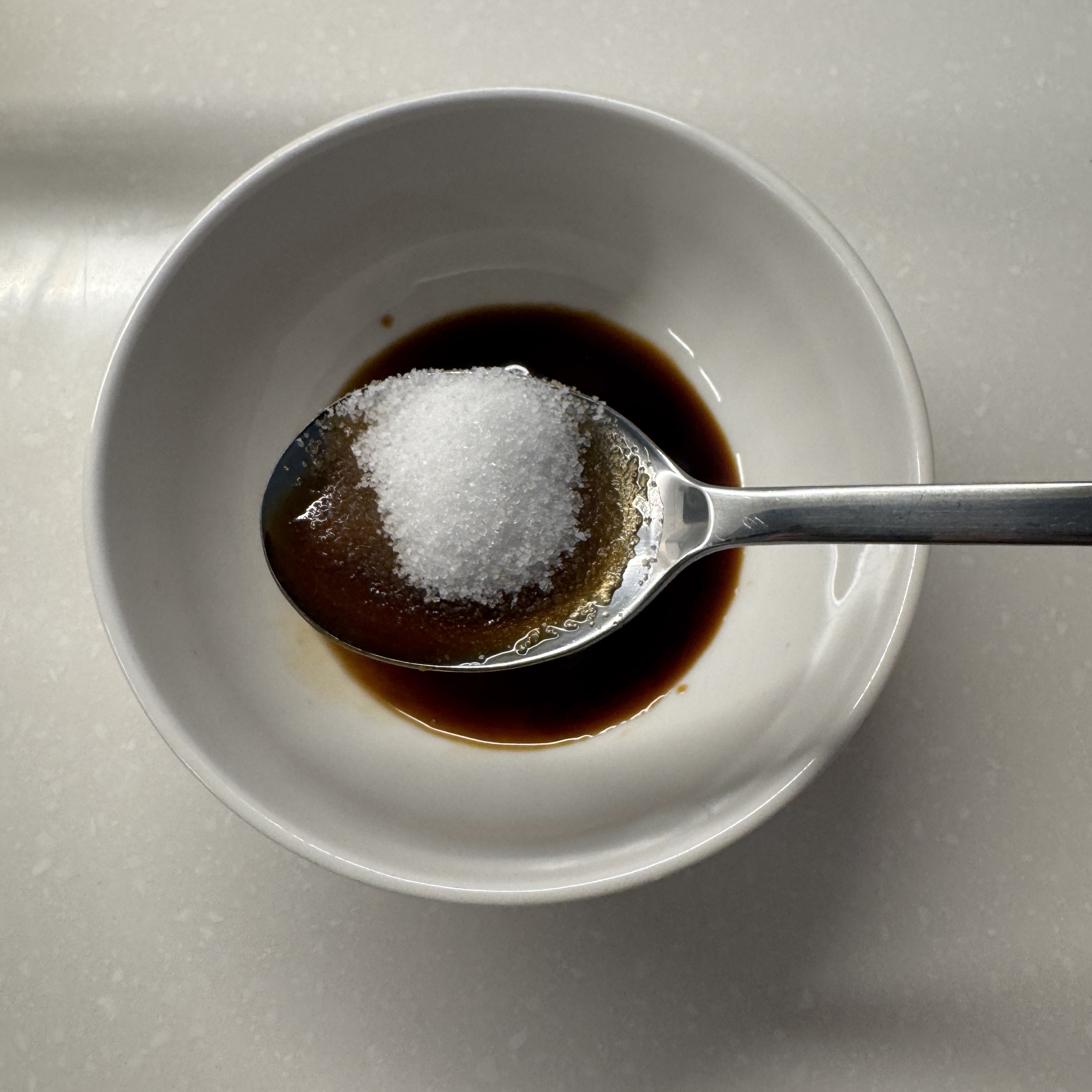 설탕은 1/2스푼, 물엿 1스푼, 다진 마늘은 그냥 냉동 다진 마늘 한 덩어리 넣었다.