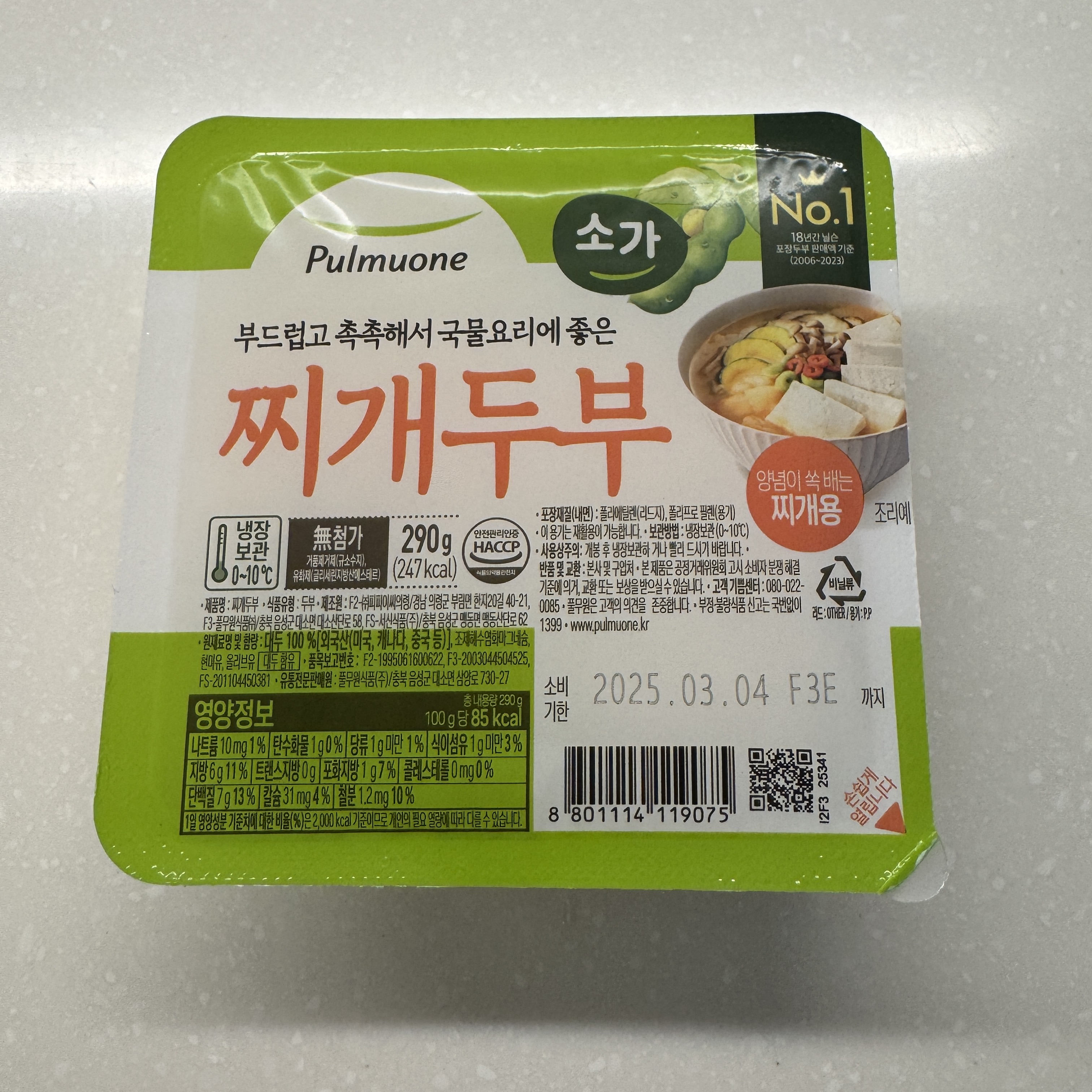 이번엔 찌개두부로 290g 짜리 샀다. 사실 아직까지 두부 구분 못한다. 순두부와 일반 두부로만 구분해서. 먹고 맛있으면 끝이라는 생각에 별로 관심도 없다. 사진에 유통 기한은 한참 전인데, 유통 기한 전에 만든 거다. 포스팅만 늦게 올리는 것일 뿐. 두부를 여러 조각으로 잘라두고.