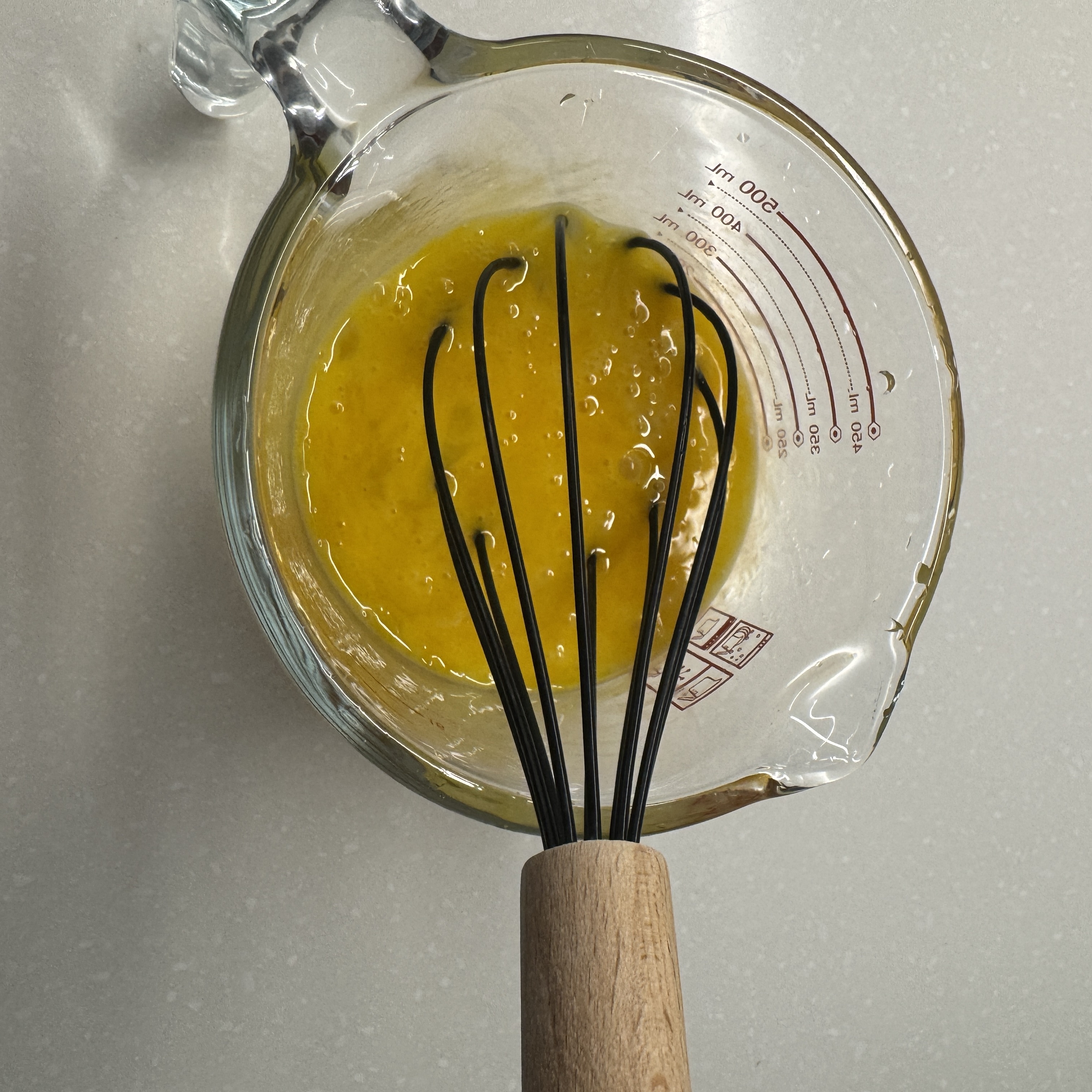 최근에 산 계량컵에 계란 네 개 풀어주고