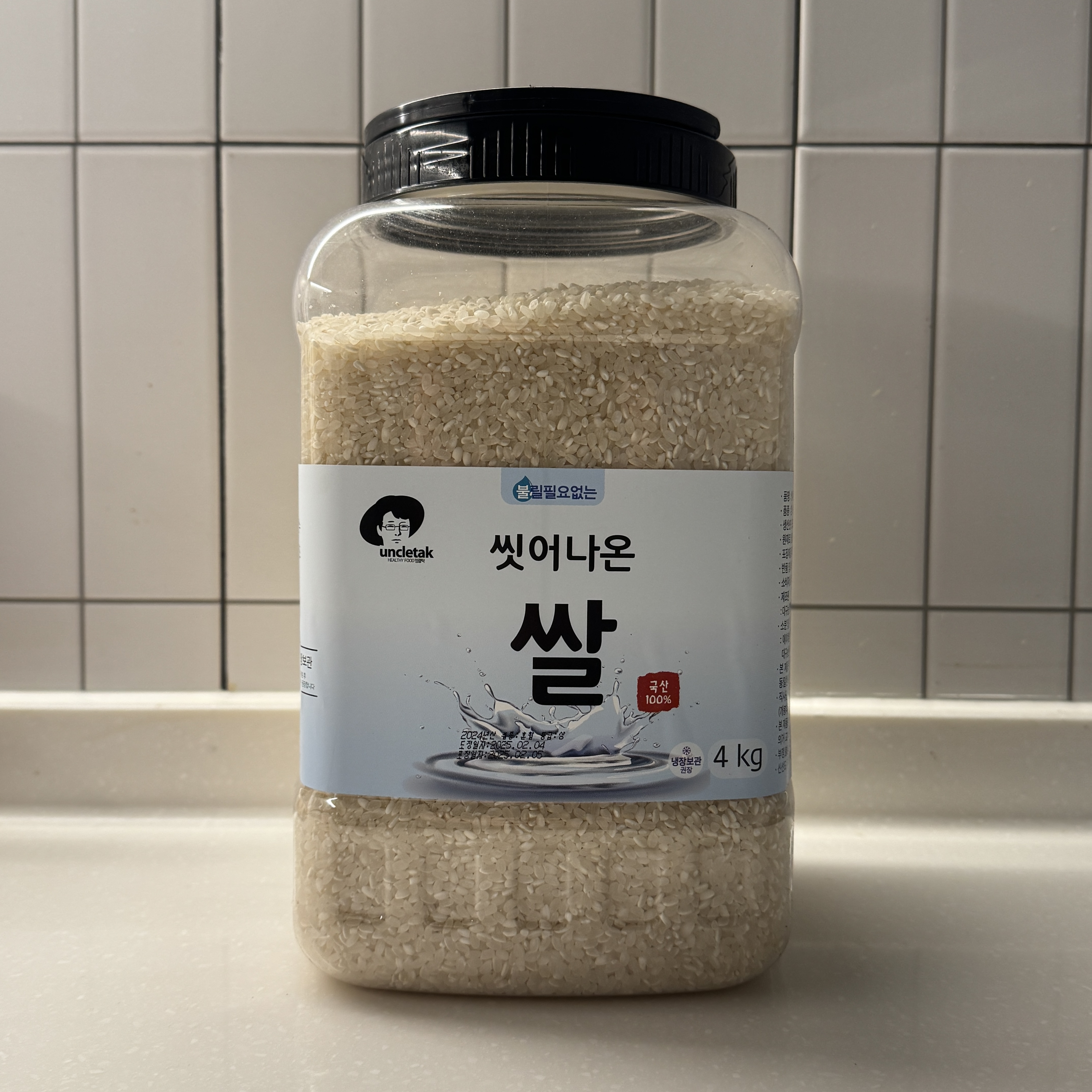 엉클탁 불릴 필요없는 씻어나온 쌀. 4kg. 쿠팡에서 14,900원. 이거 불릴 필요없어서 산 거 아니다. 그런 거는 별로 개의치 않는다. 어차피 나는 백미로 밥 해먹을 때 쌀 씻어서 불리는데, 불편함 없어. 게다가 백미는 쾌속으로 빨리 밥 되거든. 다만 쌀통으로 되어 있어서 산 것일 뿐. 내 쌀통에는 현미만 들어 있다 보니, 섞기는 좀 그렇고, 포대 자루처럼 담아두는 것도 그래서 이게 딱이다 싶었지.