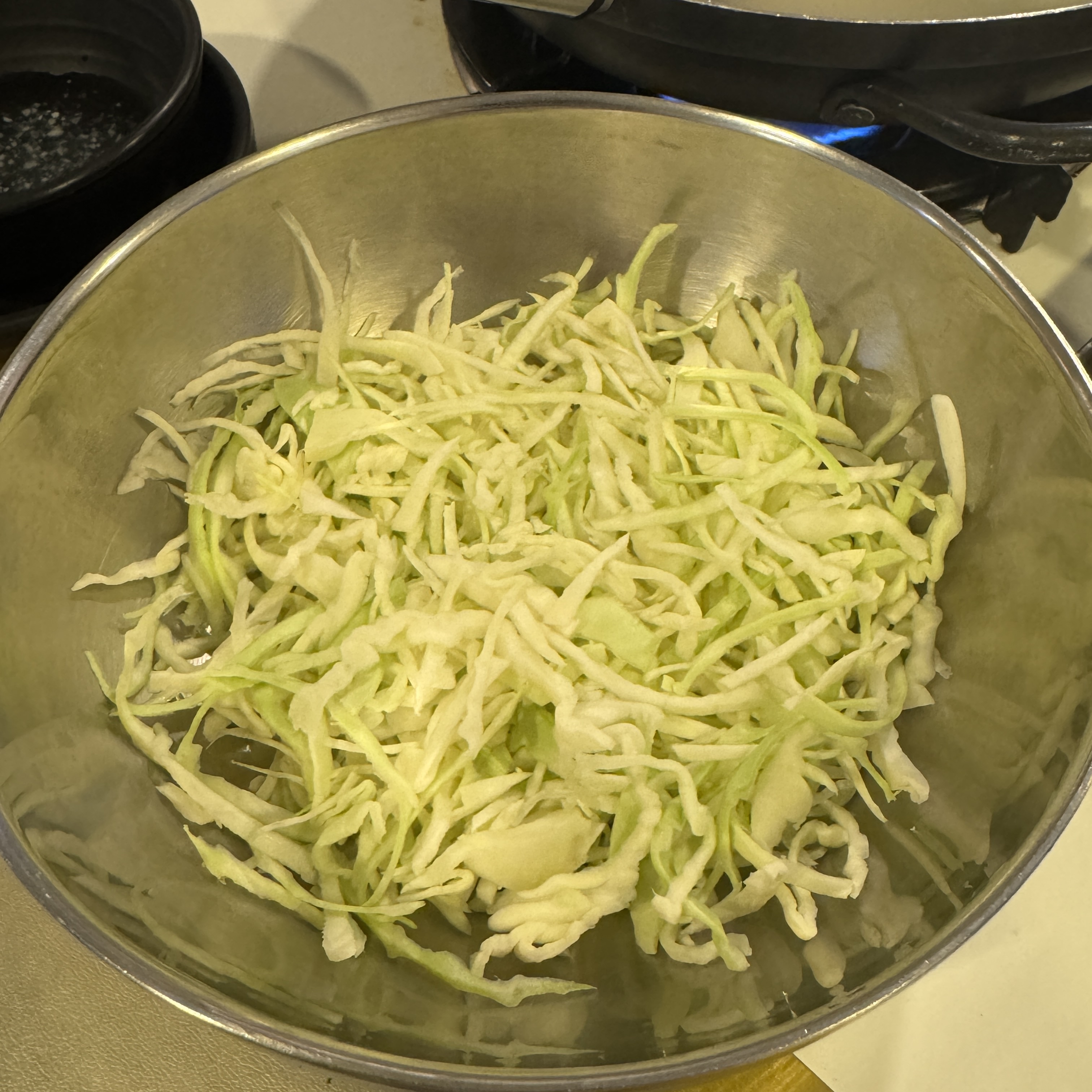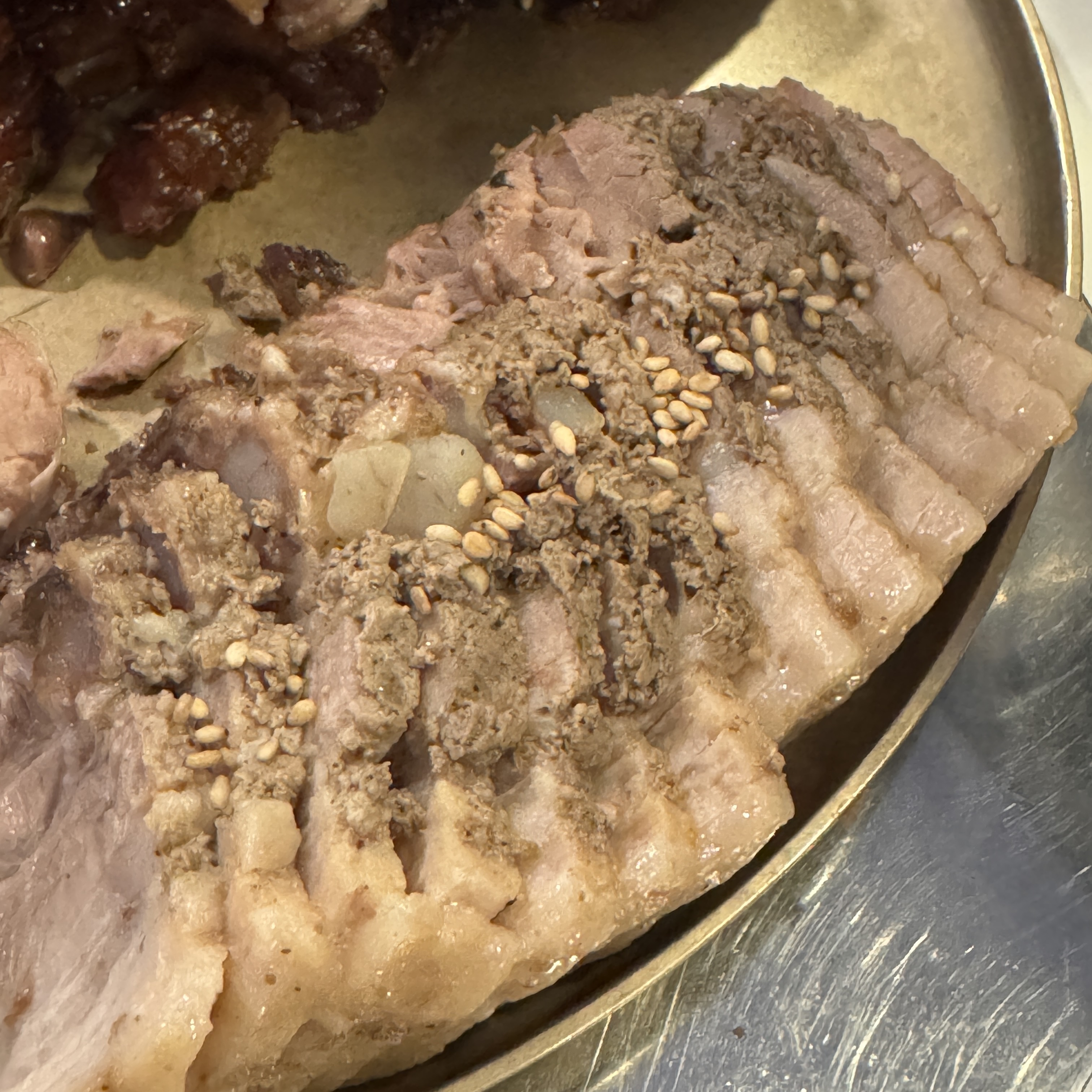 게다가 양배추 잘게 썬 거랑 소스가 나오는데, 마늘이 들어 있는 소스. 족발을 이 소스에 찍어서 양배추랑 같이 먹는다고 하더라.